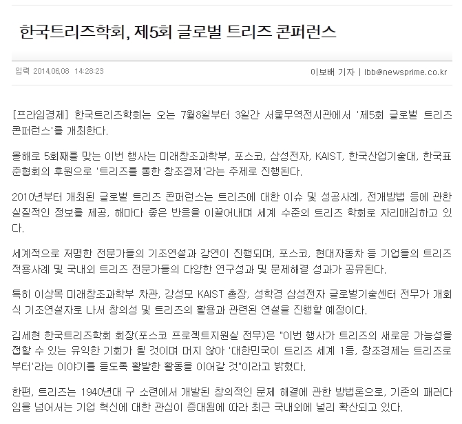 ![]() ¾È³çÇϽʴϱî, Çѱ¹Æ®¸®ÁîÇÐȸÀÔ´Ï´Ù. ¿©·¯ºÐµéÀÇ ¼º¿ø°ú Âü¿©·Î Á¦ 5ȸ ±Û·Î¹ú Æ®¸®Áî ÄÁÆÛ·±½º 2014(GTC2014)ÀÇ Áغñ°¡ ¿øÈ°È÷ ÁøÇàµÇ°í ÀÖ½À´Ï´Ù. ¿ª´ë ÃÖ´ë ±Ô¸ð·Î °³ÃÖµÉ GTC2014¿¡ °üÇÑ ¾ð·ÐÀÇ °ü½ÉÀÌ ¹Ý¿µµÈ ±â»çµéÀ» Çϱâ¿Í °°ÀÌ °øÀ¯µå¸®¿À´Ï ÁÖº¯ ºÐµé²² ¸¹Àº ¼Ò°³ ºÎʵ右´Ï´Ù. [GTC2014 ±â»ç ¸µÅ©] 1. Áß¾ÓÀϺ¸: http://joongang.joins.com/article/aid/2014/06/09/14482048.html?cloc=olink|article|default 2. MTN: http://news.mtn.co.kr/newscenter/news_viewer.mtn?gidx=2014060814190112779 3. À̵¥Àϸ®: http://www.edaily.co.kr/news/NewsRead.edy?SCD=JC41&newsid=01344806606119752&DCD=A00304&OutLnkChk=Y 4. °æÁ¦Åõµ¥ÀÌ: http://www.eto.co.kr/news/outview.asp?Code=20140608173926473&ts=94610 5. ÇÁ¶óÀÓ°æÁ¦: http://www.newsprime.co.kr/news/articleView.html?idxno=282093 6. ¾Æ½Ã¾ÆÅõµ¥ÀÌ: http://www.asiatoday.co.kr/view.php?key=20140608010003713 7. ¾ÆÁÖ°æÁ¦: http://www.ajunews.com/view/20140607154234344 ÀÌ»ó, Æ÷ÅлçÀÌÆ®¿¡¼ 'Çѱ¹Æ®¸®ÁîÇÐȸ'¸¦ °Ë»öÇÏ½Ã¸é ´õ ¸¹Àº ±â»ç¸¦ È®ÀÎÇÏ½Ç ¼ö ÀÖ½À´Ï´Ù. °¨»çÇÕ´Ï´Ù. Çѱ¹Æ®¸®ÁîÇÐȸ µå¸² |