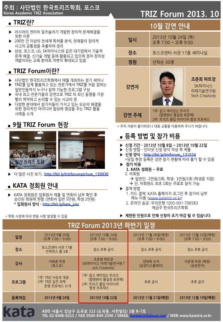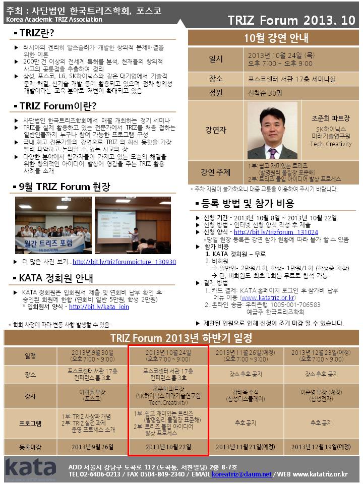 Çѱ¹Æ®¸®ÁîÇÐȸ¿¡¼ ÁÖ°üÇÏ´Â ¿ù°£ Æ®¸®ÁîÆ÷·³ ¾È³» µå¸³´Ï´Ù. 2. Àå¼Ò: °³² Æ÷½ºÄÚ¼¾ÅÍ ¼°ü 17Ãþ ÄÁÆÛ·±½º ·ë 3È£ 3. Âü°¡ ÀÚ°Ý: Çѱ¹Æ®¸®ÁîÇÐȸ Á¤È¸¿ø -> ¹«·á ºñȸ¿ø ÀÏ¹Ý -> 2¸¸¿ø/1ȸ, ºñȸ¿ø Çлý -> 1¸¸¿ø/1ȸ ´Ü, ºñȸ¿øµµ ÃÖÃÊ 1ȸ´Â ¹«·á Âü°¡ °¡´É 4. Á¤¿ø: ¼±Âø¼ø 30¸í (Á¦ÇÑµÈ ÀοøÀ¸·Î ½ÅûÀÌ Á¶±â ¸¶°¨ µÉ ¼ö ÀÖ½À´Ï´Ù) |